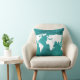 turquoise world map décor cushion