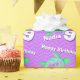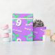 Birthday wrapping paper in bright purple and green with a swimming whimsical sea turtle design. Personalise this turtle art birthday paper with your child's name and age. Currently reads Happy Birthday Nadia 9 today. Ideal for young turtle or sea creatures or wildlife fans. Design and cute heart shell turtle painted in watercolor by Sarah Trett.