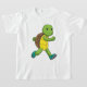 The t-shirt feels and looks great quality, a good thick cotton. It will be a little big for my son, but that means he will be able to wear it and not out grow it too soon. The print was as described on the order when personalised. True size, shape and colour T-shirt- thanks.