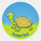Cartoon illustration of a happy turtle. Removable background image. Custom text.