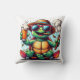 A cheerful turtle in sunglasses and a hat enjoys a party vibe, holding a beer and cigar while sitting on a skateboard among colourful decorations.