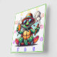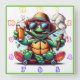 A cheerful turtle in sunglasses and a hat enjoys a party vibe, holding a beer and cigar while sitting on a skateboard among colourful decorations.
