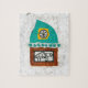 A funny grumpy turtle over brown and turquoise collage pieces, brought together with a strip of turquoise flowers. All pieces sit on a white textured background.