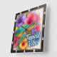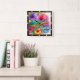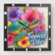 This vibrant square wall clock features a colourful turtle, its shell in shades of blue and gold, surrounded by an explosion of bright pink, purple, and orange tropical flowers. The text "Tropical Vibes" is prominently displayed, making this an artistic and cheerful decorative timepiece that brings a lively, island feel to any room.