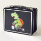 This is a standard metal lunchbox that appears to work just fine. We designed this box ourselves with an uploaded photo and custom text on the front and back. It looks absolutely beautiful except the front of the lunchbox is not centered like it shows in the photo. The print borders don't align with the inset flat part of the box where the preview photo online showed it perfectly centered in there. The back looks nice and centered though.