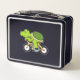 This is a standard metal lunchbox that appears to work just fine. We designed this box ourselves with an uploaded photo and custom text on the front and back. It looks absolutely beautiful except the front of the lunchbox is not centered like it shows in the photo. The print borders don't align with the inset flat part of the box where the preview photo online showed it perfectly centered in there. The back looks nice and centered though.