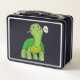 This is a standard metal lunchbox that appears to work just fine. We designed this box ourselves with an uploaded photo and custom text on the front and back. It looks absolutely beautiful except the front of the lunchbox is not centered like it shows in the photo. The print borders don't align with the inset flat part of the box where the preview photo online showed it perfectly centered in there. The back looks nice and centered though.
