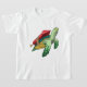 The t-shirt feels and looks great quality, a good thick cotton. It will be a little big for my son, but that means he will be able to wear it and not out grow it too soon. The print was as described on the order when personalised. True size, shape and colour T-shirt- thanks.
