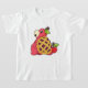 The t-shirt feels and looks great quality, a good thick cotton. It will be a little big for my son, but that means he will be able to wear it and not out grow it too soon. The print was as described on the order when personalised. True size, shape and colour T-shirt- thanks.