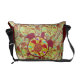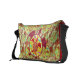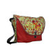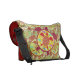 Sea turtle within sea turtle in red / orange / yellow colours. Sea turtle with a design of a smaller turtle, and multiple colourful fish against patterned background. Sea turtle art. This messenger bag has the design on the outside.