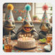 Turtles celebrating birthday with cake and hats square sticker