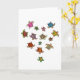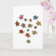 Cute card is illustrated with colourful turtles arranged to form the shape of a heart
