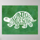 This cute and funny tortoise print has the turtle pun "Turtley Awesome" on the tortoise's shell. Perfect gift for turtle and tortoise lovers to let them know you think they're totally awesome. White design on green watercolor style background.