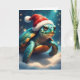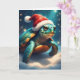 Make a splash this holiday season with a card that’s both whimsical and heartwarming! Featuring a charming sea turtle in a Santa hat, resting against a snowy, starry backdrop, this design blends coastal flair with festive magic. Perfect for ocean lovers, marine life enthusiasts, or anyone who enjoys a playful twist on traditional Christmas cards. Send this unique card to friends, family, or colleagues to share holiday wishes that are both lighthearted and unforgettable. It’s the perfect way to spread cheer that’s as unique as the sea turtle itself!