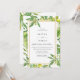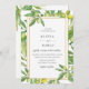 Beautiful watercolor olives and leaves adorned on golden frame, wedding invitation. Back of card features matching olive branch arrangements.