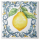 Rich and beautiful elegant watercolor lemon with Mediterranean blue and yellow frame design and pattern. Tuscan rustic look for your cottage home or shabby chic.