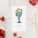 Sunflower floral and stemmed glass wedding guest napkin. Stunning. Cobalt blue text. Beautiful font.
