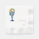 Sunflower floral and stemmed glass wedding cocktail napkin. Stunning. Gold text. Coined. Elegant font.