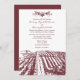 Tuscan Wine Winery Vineyard Wedding Invitations -- match the RSVP cards and more below on this page. Each invite features a vintage vineyard field landscape at the bottom with grapes, vines and leaves at the top in a wine shade (hex colour code #722F37). This design is also available in various other colours such as deep brown, dark green and more. These wedding invitations are set to high quality basic card stock; however, you can upgrade to fancier types to the above right. Each invitation comes with a fitted white envelope. See matching wedding RSVP cards below to complete the suite.