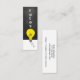 A mini style tutor or teacher business card with a big light bulb against chalkboard whimsical style. Personalise with your information and subject areas on the back of the card.