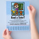 Tutoring can be a great way to earn extra money. This adorable, eye catching flyer is perfect to hang in local businesses, churches, synagogues, libraries or parks. Cut between the contact info at the bottom so that people can just tear off your number so that they don't forget! The text and colour are fully customisable.