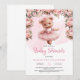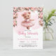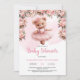 Tutu ballerina girl teddy bear dusty pink roses baby shower invitation,