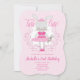 FRONT: Sketched design of a grey bunny wearing a tutu and tiara, holding onto her doll. Textured background. Personalise with your own text details. BACK: Pink sketched floral pattern. You could add your own photo to the back, if you'd like. If you have any questions, feel free to send me a message. NOTE: This listing is available as a BRACKET-SHAPED invitation. A traditional 5x7 shape is available in my "Tutu Cute Bunny" Collection.