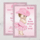 Elegant pink vintage cowgirl ballerina baby shower invitations with a beautiful vintage illustration of a cute and adorable baby girl with stylish pink Stetson cowboy hat, pink tutu and ballet slippers on a pretty pink gradient background with a classy black polka dots border. The text on the front reads Ye-Haw! A Tutu cute little cowgirl is on her way! Chic, trendy, glamourous, girly, fun, fashionable affordable personalised / personalised custom girl Baby Shower invites for your cowgirls theme / themed showers. Decorated on both sides. The back has a cute pink Stetson cowgirl hat with the words "It's a girl" Double sided printing. If you need any assistance customising your product please contact me through my store and I will be happy to help.