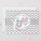 A gender reveal party invitation featuring an adorable polka dot jumper with blue tie and pink tutu and a grey and white chevron print with 3D-look bows and trims.