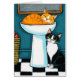 Cute cat themed note card featuring an illustration of a cats in the bathroom. A ginger tabby sleeps peacefully in the sink and a tuxedo sits beneath staring with big green eyes. Perfect to send to cat lovers and using for any occasion. Personalise the inside message or delete for a blank inside. Illustration © Lisa Marie Robinson. All rights reserved.