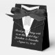 Tuxedo Black Bowtie Tent Style Favour Box with Ribbon (Black). Black tie/ tuxedo gift bag with fully customisable texts "Thank you for being with us on this special day! Jonathan & Samantha August 21, 2018". These stylish bowtie tuxedo party gift bags are fully customisable, add your personal texts and images! Stylish personalised bags for wedding parties, anniversaries and receptions, holiday or New Year party or other special festive events!