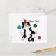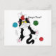 Black and white tuxedo cat falling with Christmas ornaments in a backdrop of green. Hang In There this Holiday Season.