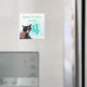 Painting of the number four in green with pink swirl ribbons, with a photo of our tuxedo cat wearing a pink and white striped dressed, with Happy Birthday Jeremy, is printed on custom magnets. The text can easily be customised on the template form.