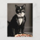 tuxedo cat and pizza postcard