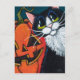 Tuxedo Cat and Smiling Pumpkin Lantern Postcard