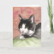 This note card featuring a cat portrait of Ava Gardner, a beautiful black and white feline is painted in watercolor with tones of green and mauve. She was one of the many cats available for adoption from Outcast Cat Help. The original painting was donated to the nonprofit organisation in the hopes it would encourage her adoption, which it has! Ava is purring sweetly in her new home.