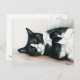 This postcard features a reproduction of my original coloured pencil drawing of a tuxedo cat.