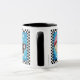 This mug features a black and white cat asleep on the moon. The moon is wearing a pink nightcap. The painting is surrounded by a black and white checked border and appears on both sides of the mug. Change the style of mug to suit you. Copyright © Lisa Marie Robinson. All rights reserved. It is illegal to use or duplicate this, or any of our images, without written permission.