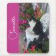 Tuxedo Cat Cats and Flowers Girls Name Dark Pink Mouse Pad