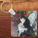 Tuxedo Cat Cute with Pretty Flowers Black Cats Key Ring