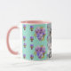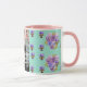 Tuxedo Cat Funny Happy Dance Birthday Mug Aqua. A photo and floral design. A must for any cat lover!