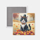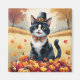 Tuxedo Cat In Autumn Leaves Thanksgiving Art Magnet