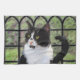 Tuxedo Cat in Window Painting Original Animal Art Tea Towel