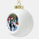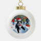 Tuxedo Cat Running in Snow with Christmas Hat Ceramic Ball Christmas Ornament