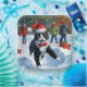 A playful Tuxedo Cat runs through the snowy winter scene, wearing a festive red Christmas hat. This charming design highlights the breed’s distinctive black and white coat, curious nature, and lively spirit while capturing the warmth and joy of the holiday season. A delightful winter moment full of festive cheer.