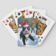 Tuxedo Cat Running in Snow with Christmas Hat Playing Cards