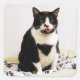 Tuxedo Cat Sticking Out Her tongue Square Sticker