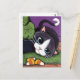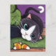 Tuxedo Cat Witches Hat & Candy Corn Halloween Postcard