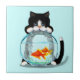 Tuxedo Cat with Fish Tile