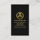 Overleaf, in a black cover, details are at the centre with the gold logo at the top followed by your prestigious name, contact details and a slogan caption to publicise your services.